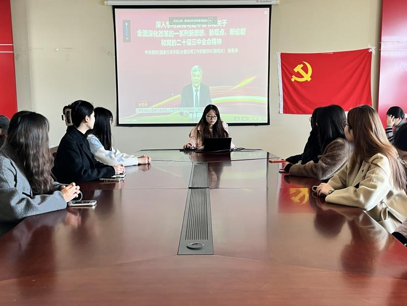 在会议上,左云云同志带领支部党员就谢春涛老师所作的“深入学习贯彻习近平总书记关于全面深化改革的一系列新思想、新观点、新论断和党的二十届三中全会精神”主题报告进行内容回顾。